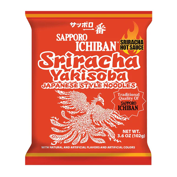 DESCRIPTION: Sriracha yakisoba is a delicious dish that combines the savory flavors of Sapporo Ichiban ramen with the spicy bite of sriracha flavoring. Add vegetables and meat to make more delicious.